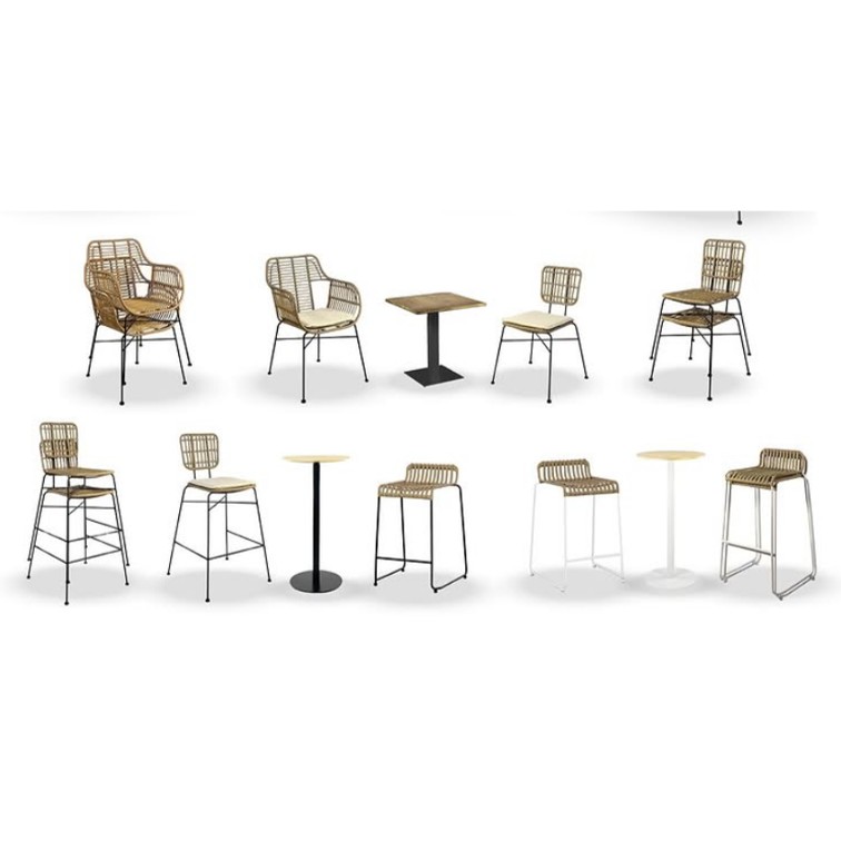 Fabriqué en rotin synthétique recyclé, il offre un aspect naturel et authentique, adapté aussi bien aux aménagements extérieurs (terrasses, espaces de restauration) qu’intérieurs (lounge, espaces détente).