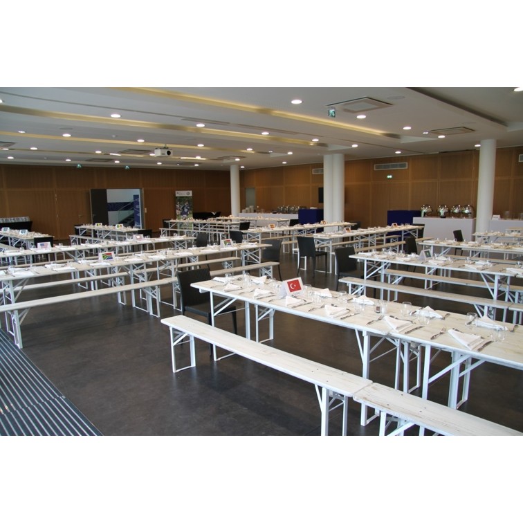 Outdoor, avec son design épuré et naturel, il est pour des espaces catering, des salles d'atelier ou de conférence moderne.